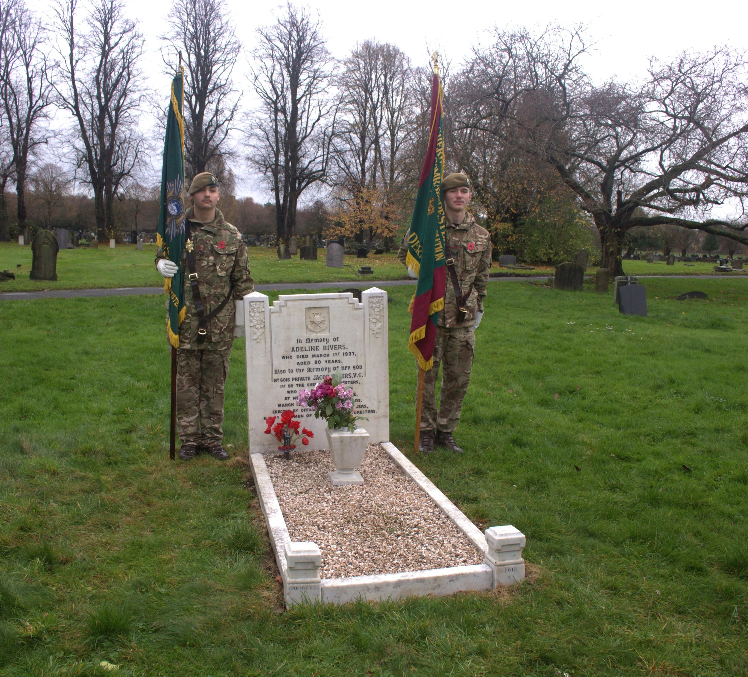 In tribute to her and her son, “the officers, warrant officers, N.C.O.’s and men of the Sherwood Foresters”, erected a headstone on her grave. On her death, she bequeathed his Victoria Cross to the Sherwood Foresters Regiment.