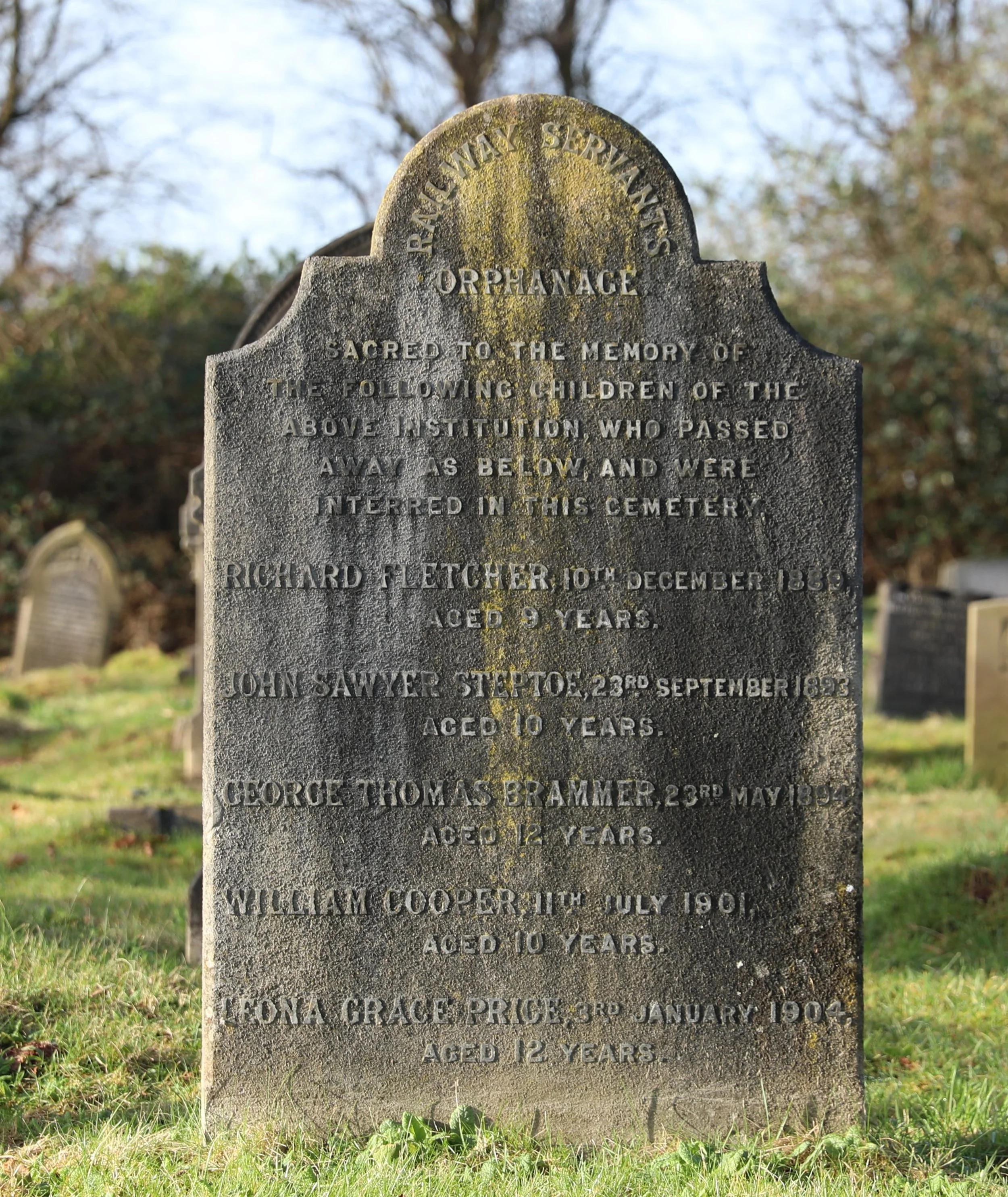 Never assume that a headstone gives details of those buried in a particular grave. This headstone details children from Railway Servants Orphanage (St Christopher’s Home) buried in the cemetery.