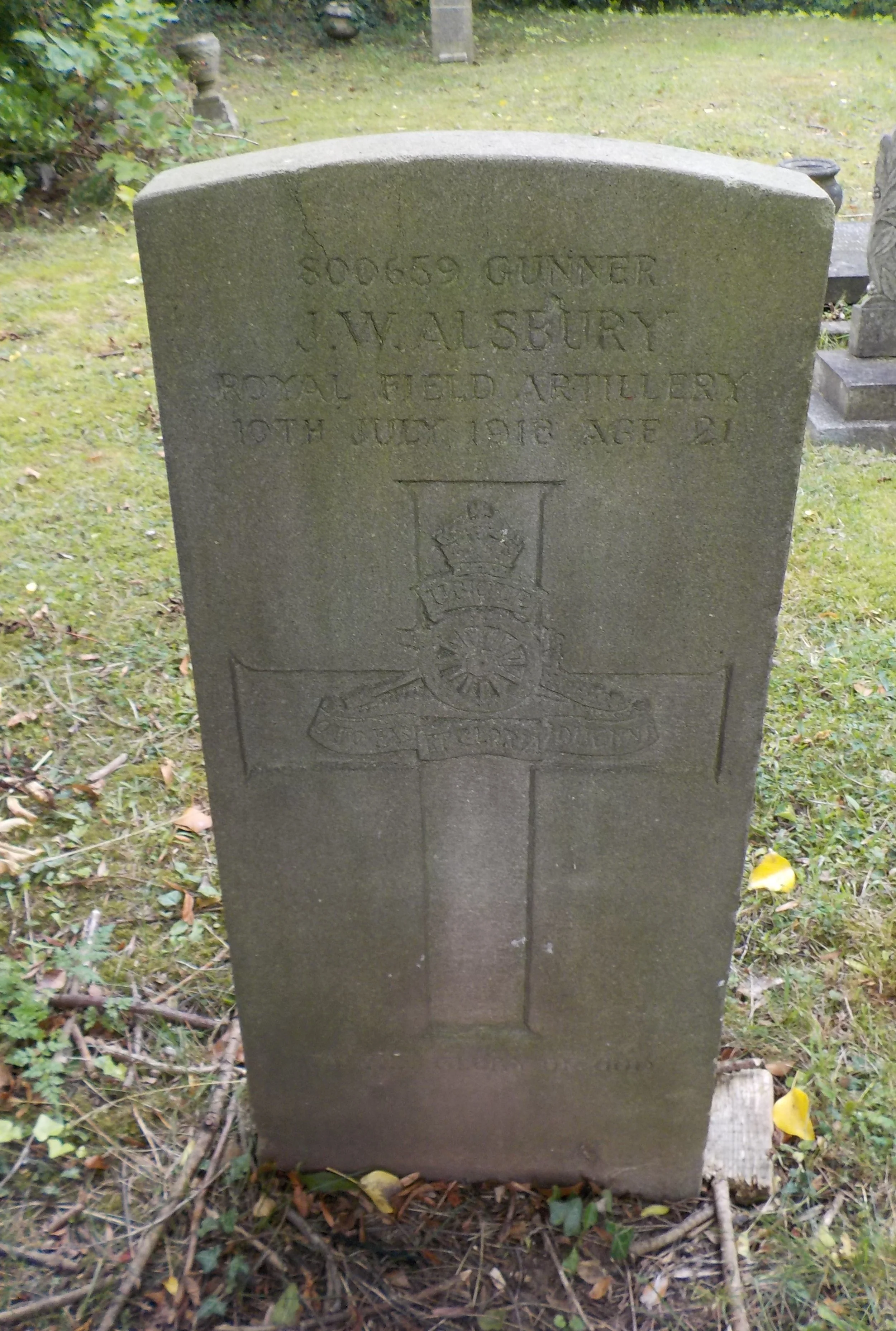 Died 10/07/1918, Isolation Hospital, Derby, Age 21. Gunner, Royal Field Artillery, Service Number 800659.