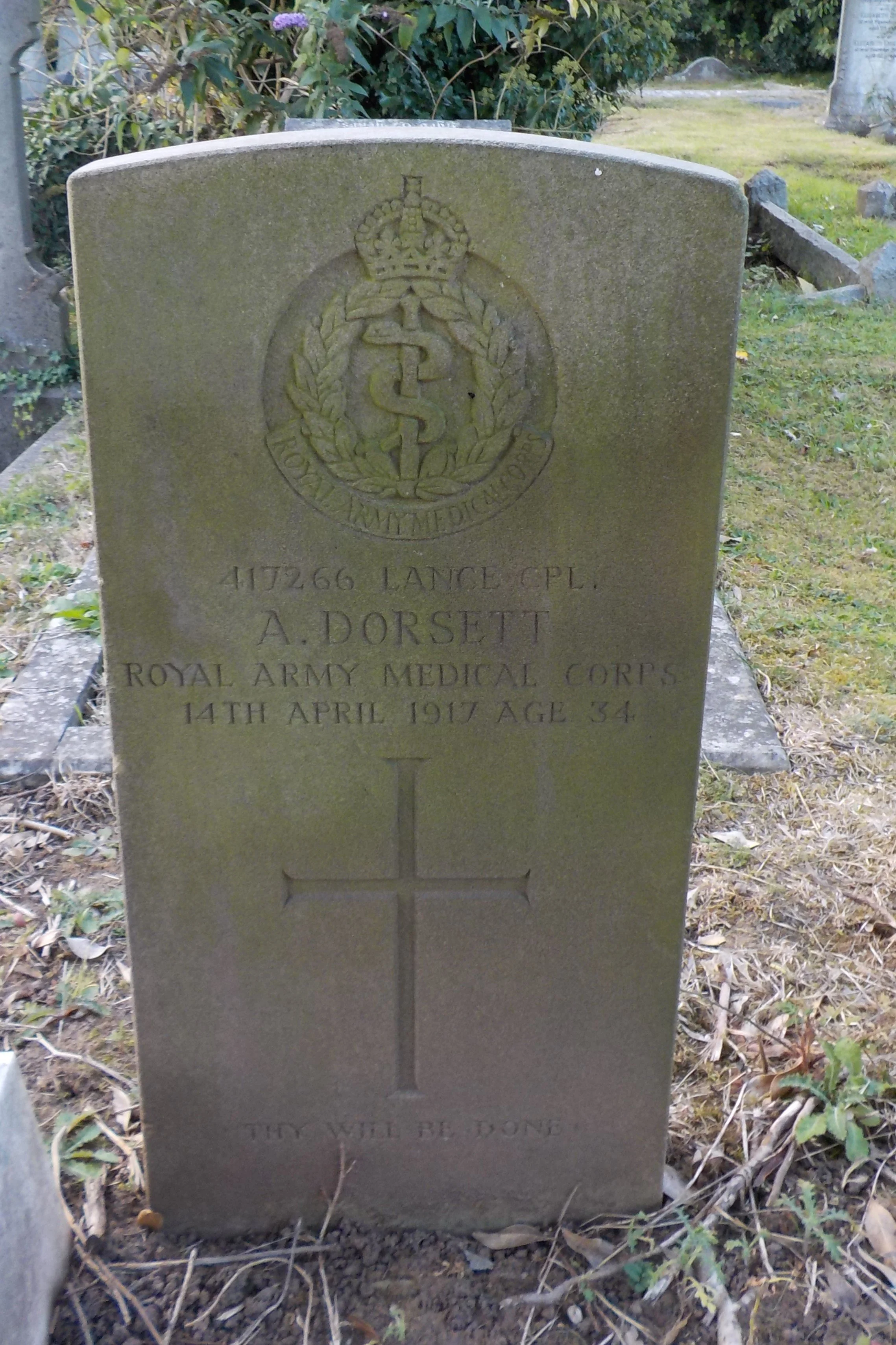 Died 14/04/1917 Age 34. Lance Corporal, Royal Army Medical Corps, Service Number 417266. Husband of Catherine Beatrice Dorsett, of 224, Siddals Rd., Derby.