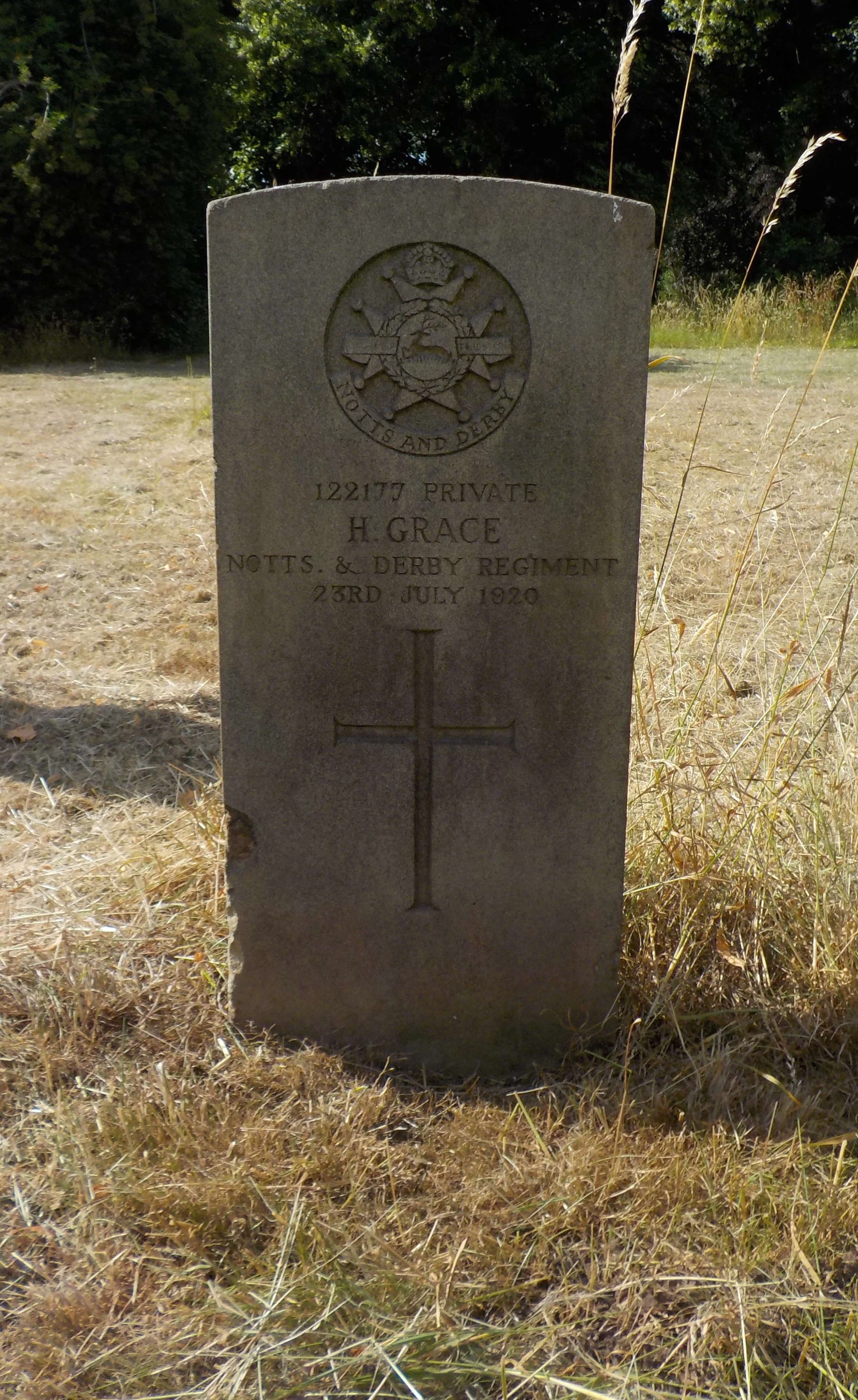 Died 23/07/1920 Age 30. Private, Sherwood Foresters (Notts and Derby Regiment), 3rd Bn. Service Number 122177.