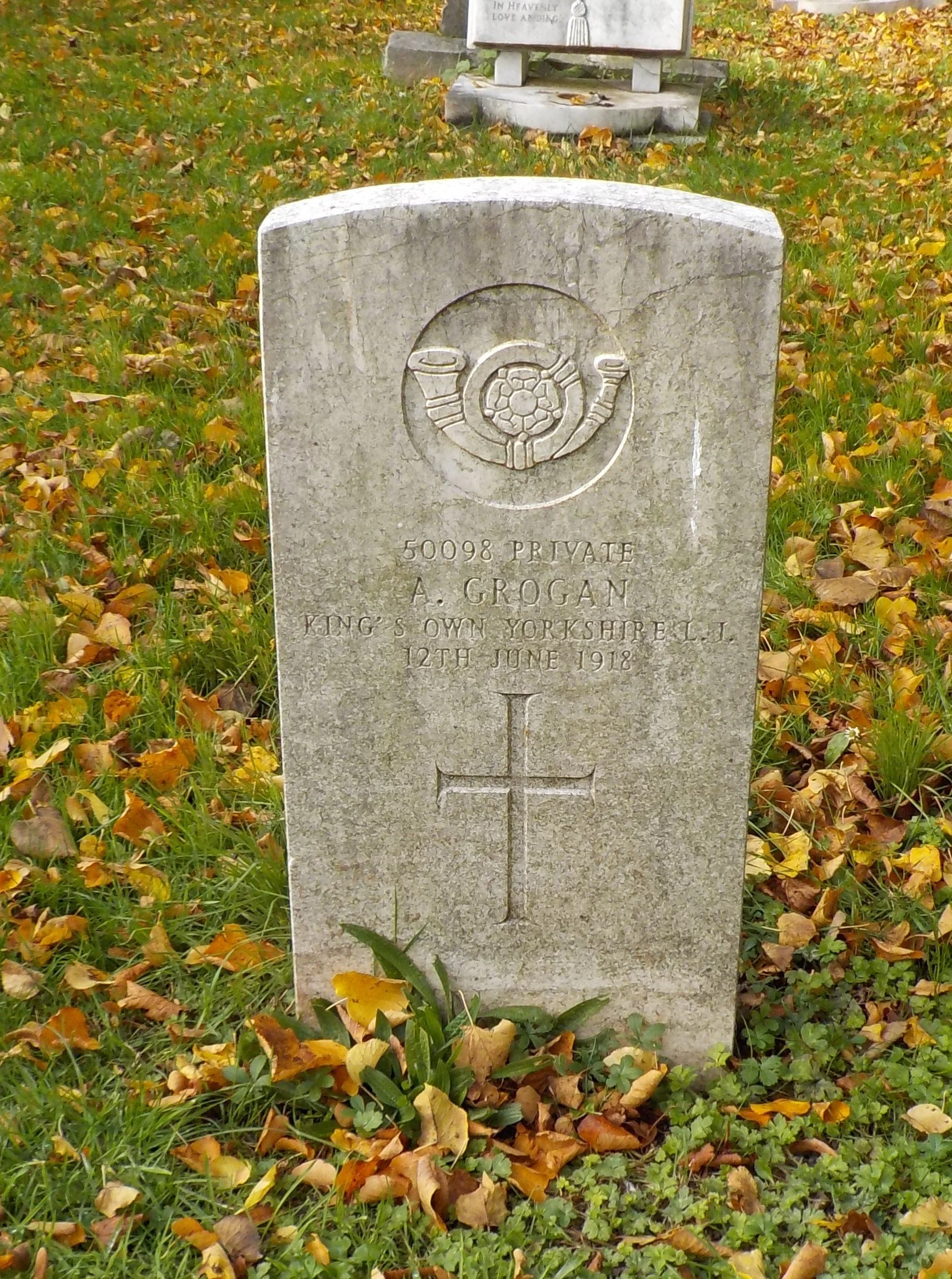 Died 12/06/1918 Age 35. Private, King's Own Yorkshire Light Infantry, Service Number 50098.