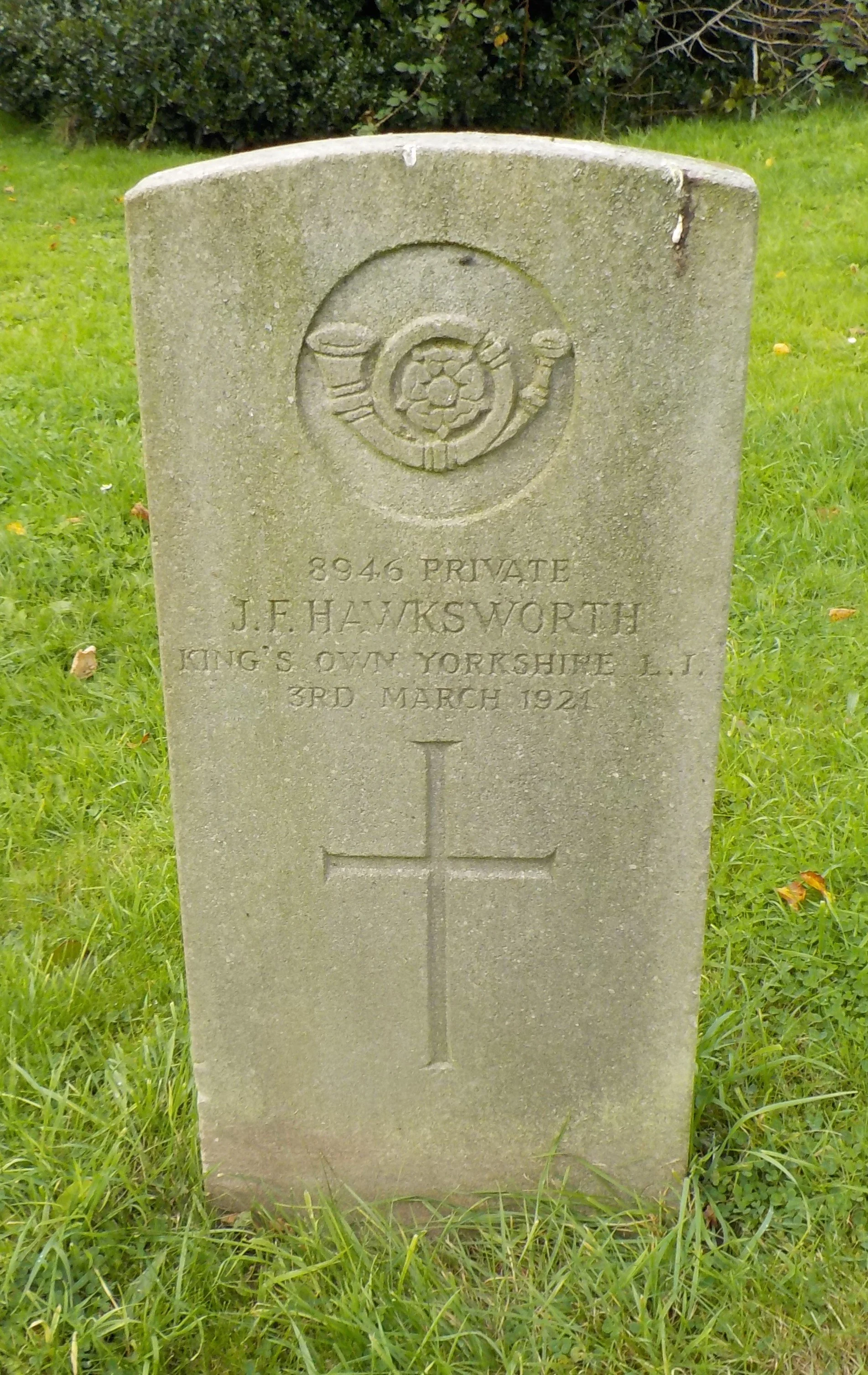 Died 03/03/1921 Age 32. Private, King's Own Yorkshire Light Infantry, 2nd Bn. Service Number 8946.