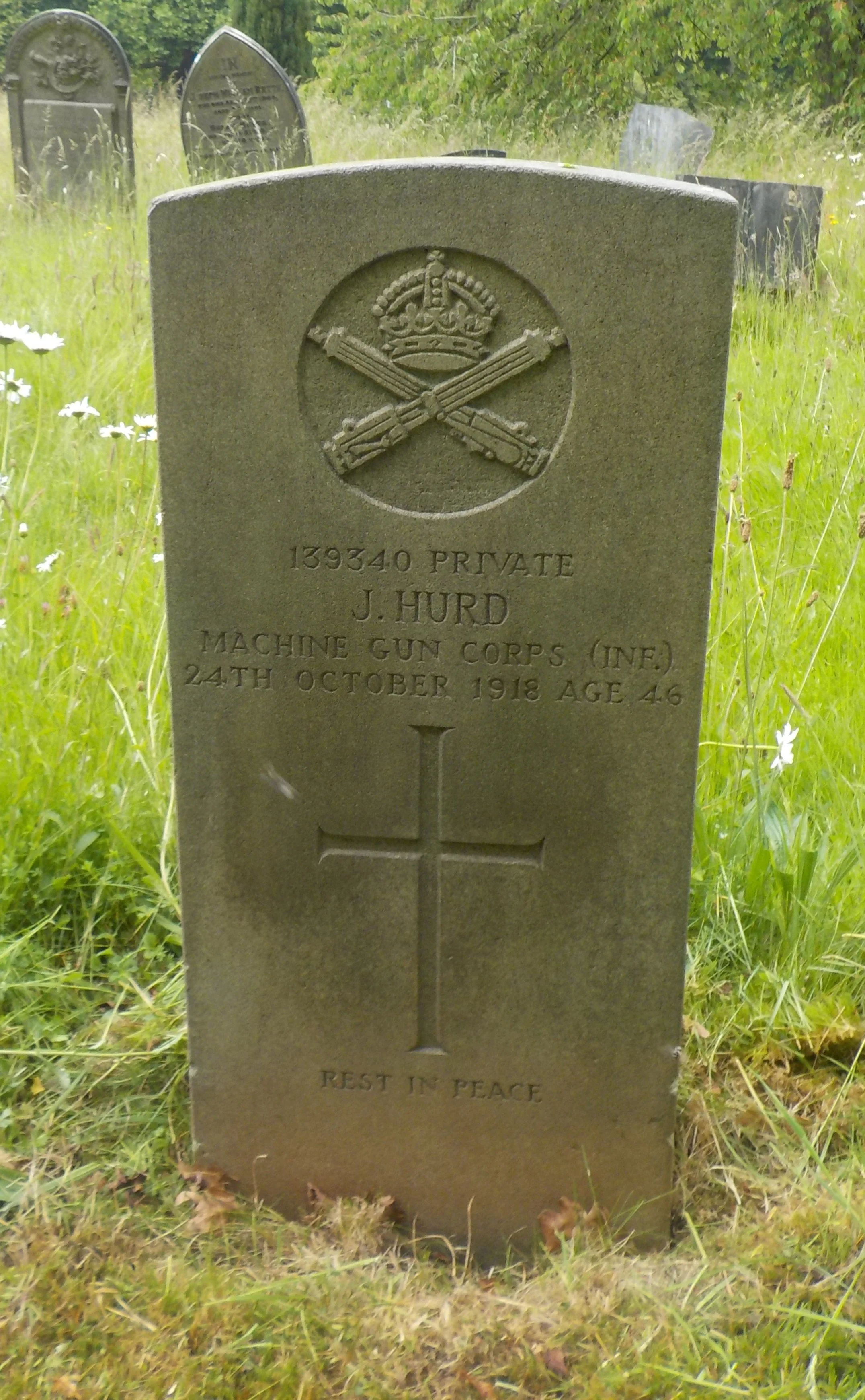 Died 24/10/1918 Age 46. Private, Machine Gun Corps (Infantry), Service Number 139340. Son of William and Emma Hurd, of 139, Boyer St., Derby.