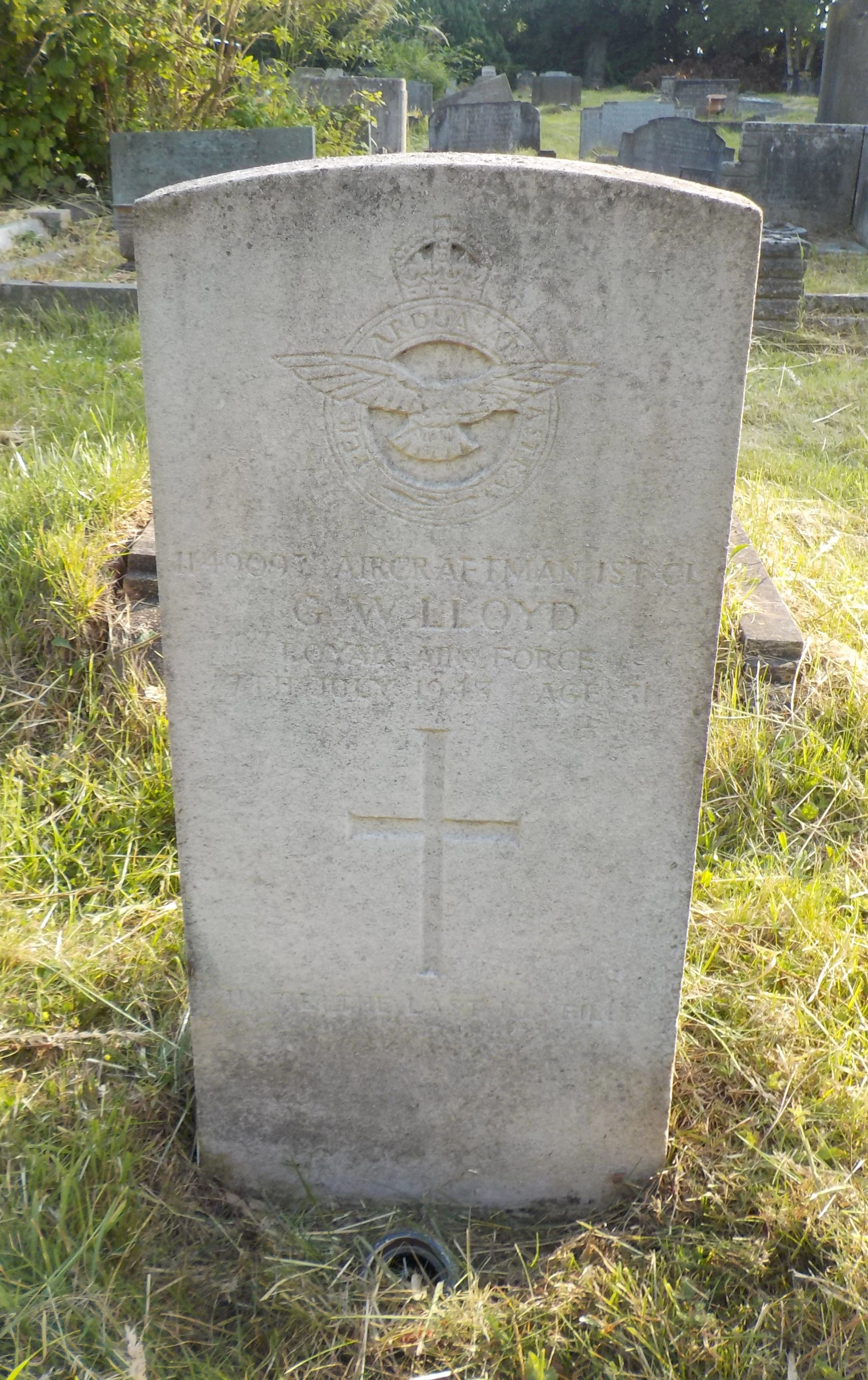 Died 07/07/1943 Age 31. Aircraftman 1st Class, Royal Air Force Volunteer Reserve, Service Number 1149097. Son of Myra Lloyd, and stepson of Sidney Dyer; husband of Gertrude Mary Lloyd, of Derby.
