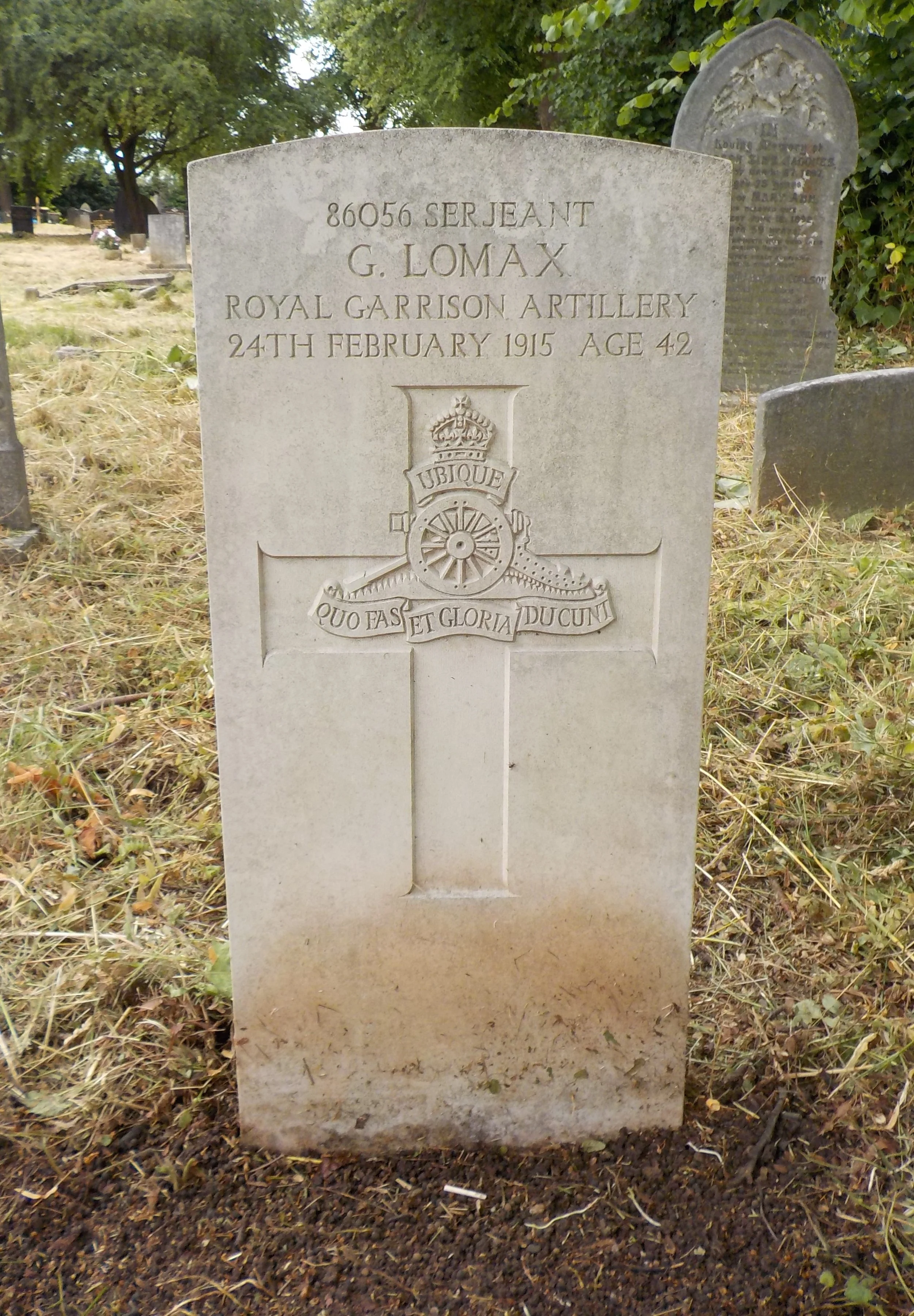 LOMAX, George. CH/PM. WW1. CWGC.Died 24/02/1915 Age 42. Serjeant, Royal Garrison Artillery, 15th Coy. Service Number 86056.