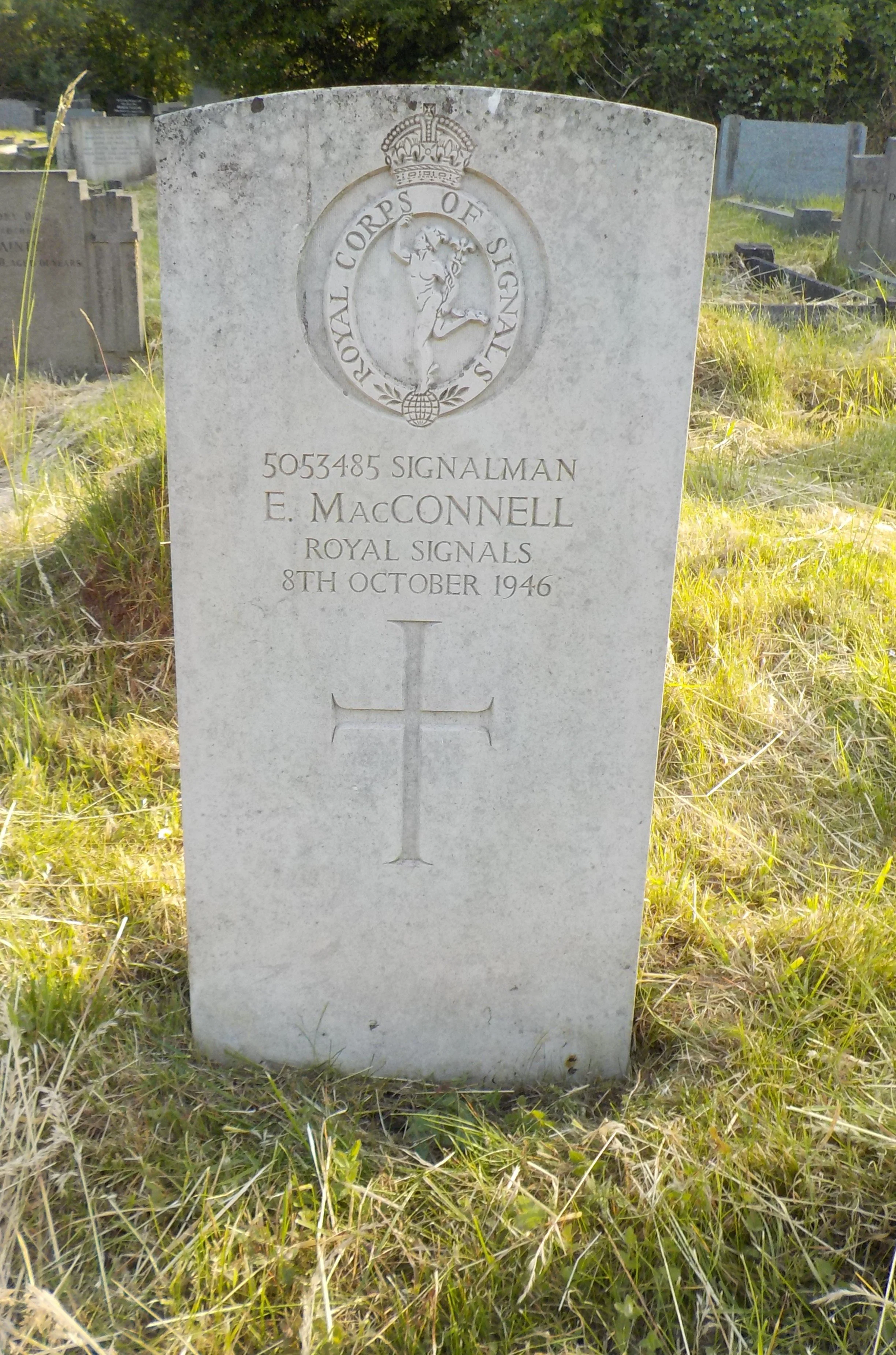 MacCONNELL, Eric. CH. WW2. CWGC.Died 08/10/1946 Age 26. Signalman, Royal Corps of Signals, Service Number 5053485.