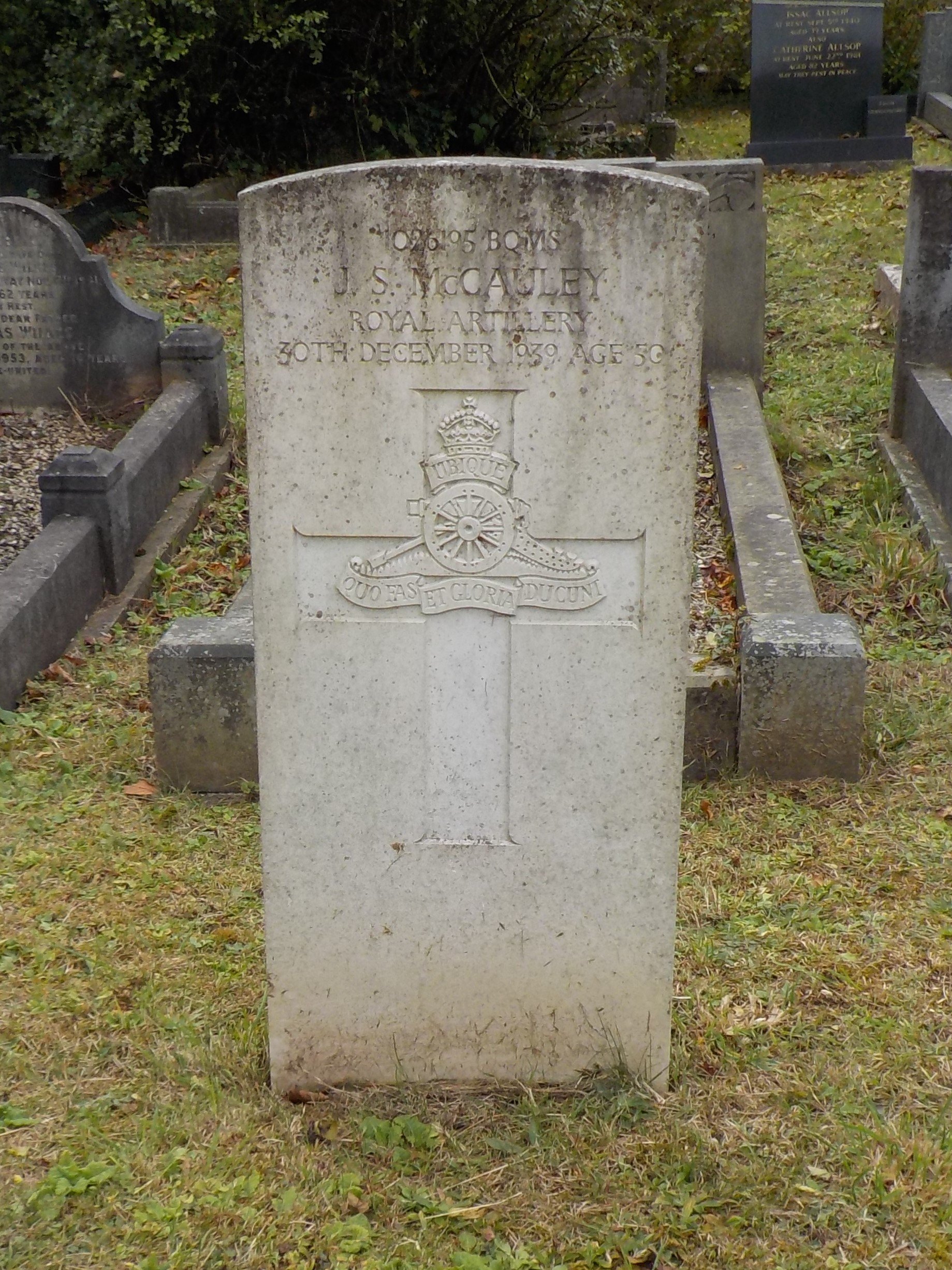 Died 30/12/1939 Age 50. Battery Quartermaster Serjeant, Royal Artillery, 226 Bty., 68 A.A. Regt. Service Number 1026195.