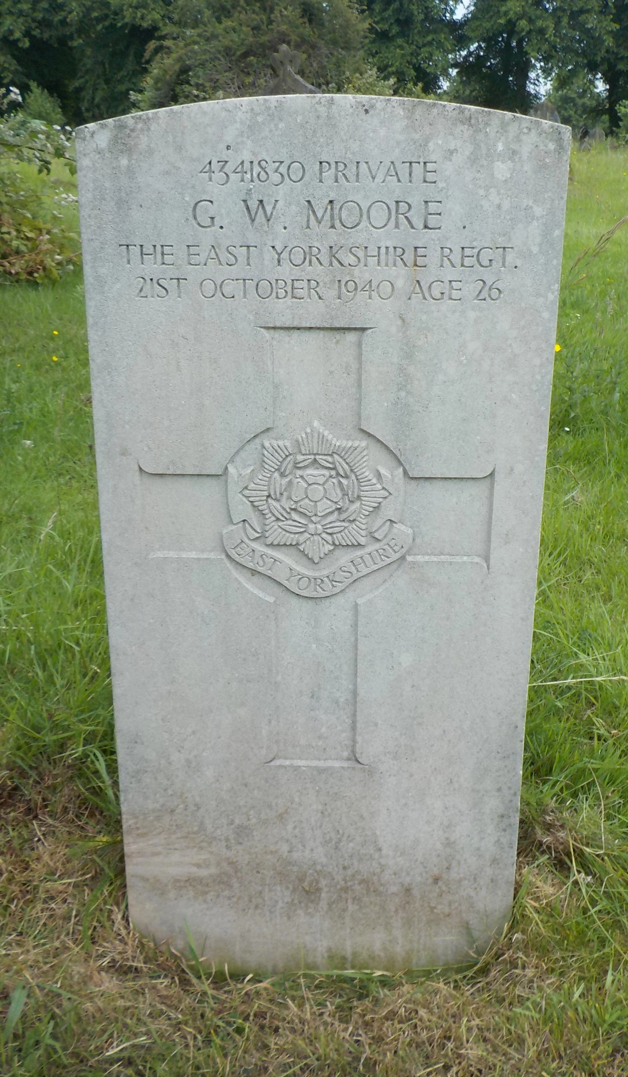 Died 21/10/1940 Age 26. Private, East Yorkshire Regiment, 2nd Bn. Service Number 4341830.