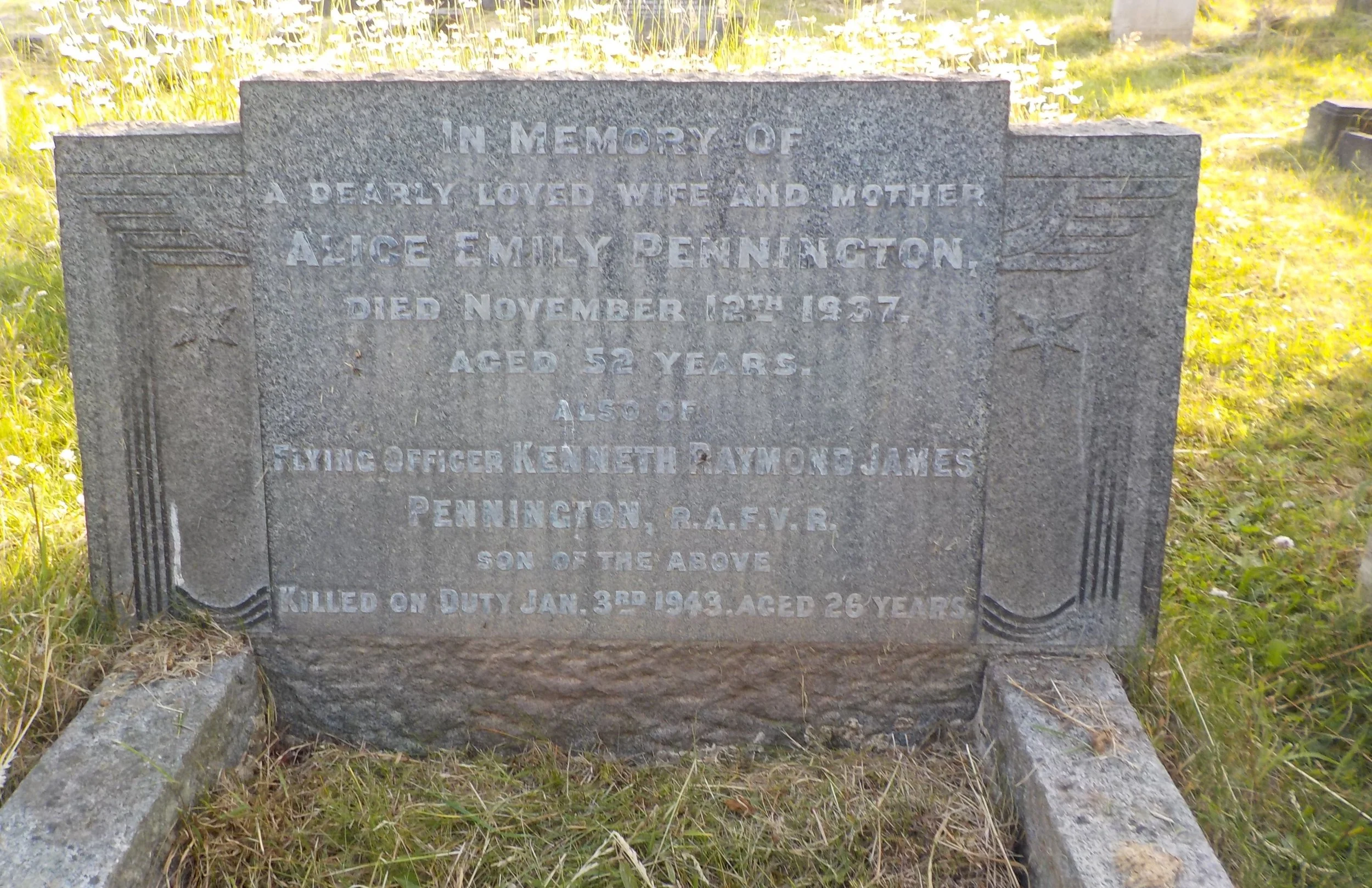 Died 03/01/1943 Age 26. Flying Officer, Royal Air Force Volunteer Reserve, Service Number 122090. Son of Frederick John and Alice Emily Pennington, of Derby. B.A. (Cantab.).