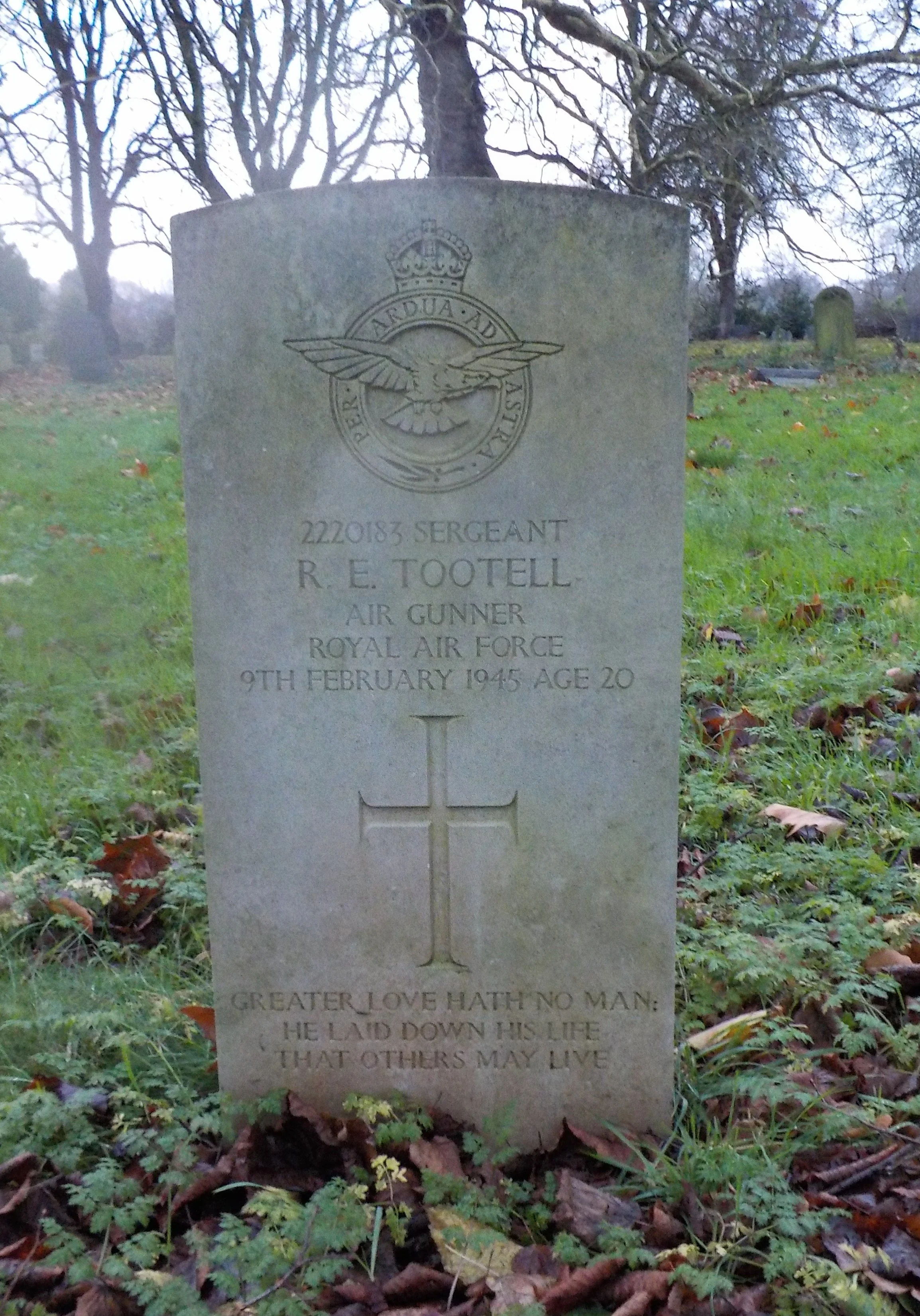 Died 09/02/1945 Age 20. Sergeant, Royal Air Force Volunteer Reserve, 149 Sqdn. Service Number 2220183. Son of Valentine James Tootell and Rose Tootell, of Derby; husband of Olive Edna Tootell, of Derby.