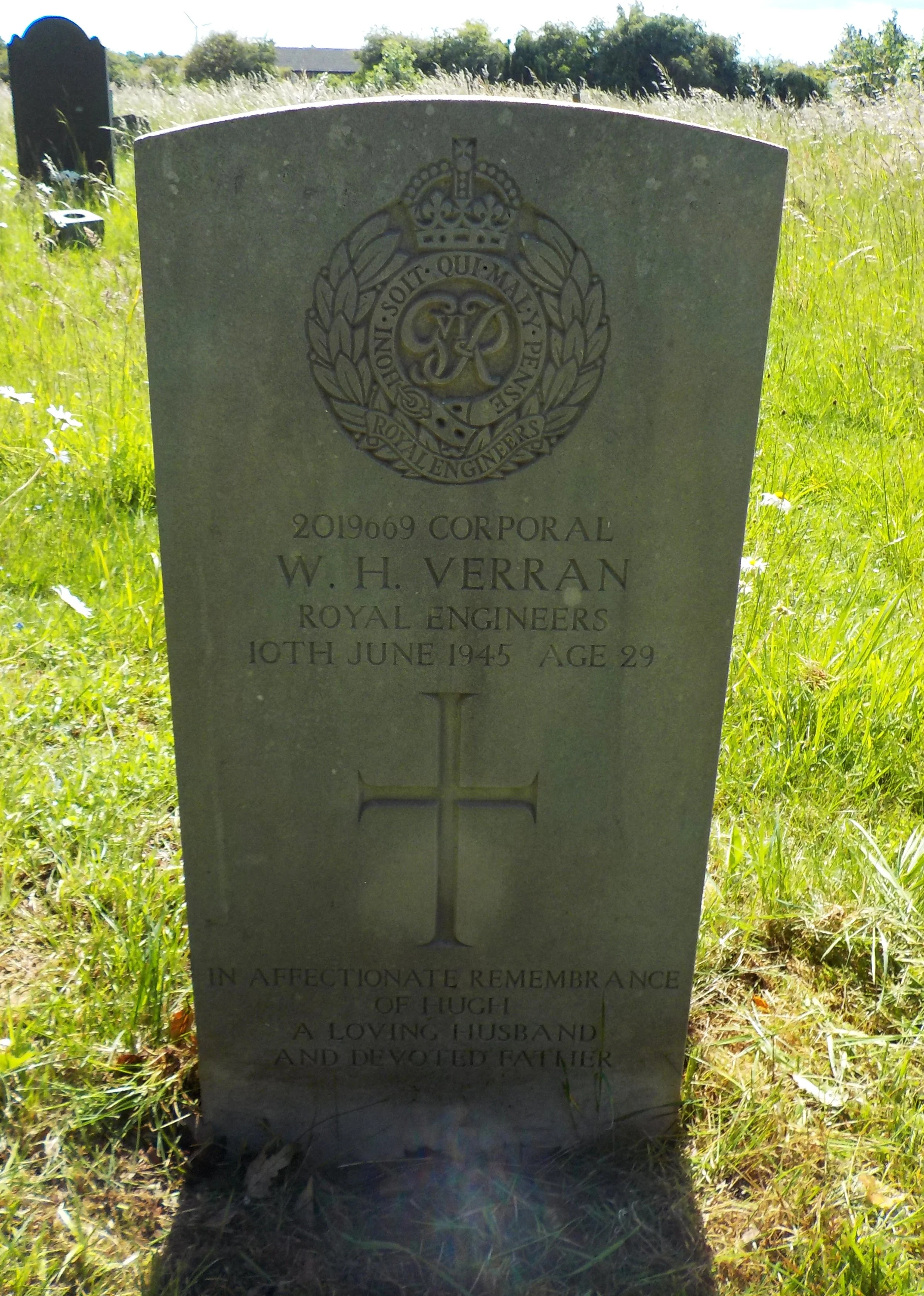 Died 10/06/1945 Age 29. Corporal, Royal Engineers, Service Number 2019669. Son of William and Mary Amelia Verran; husband of Muriel Helen Verran, of Derby.