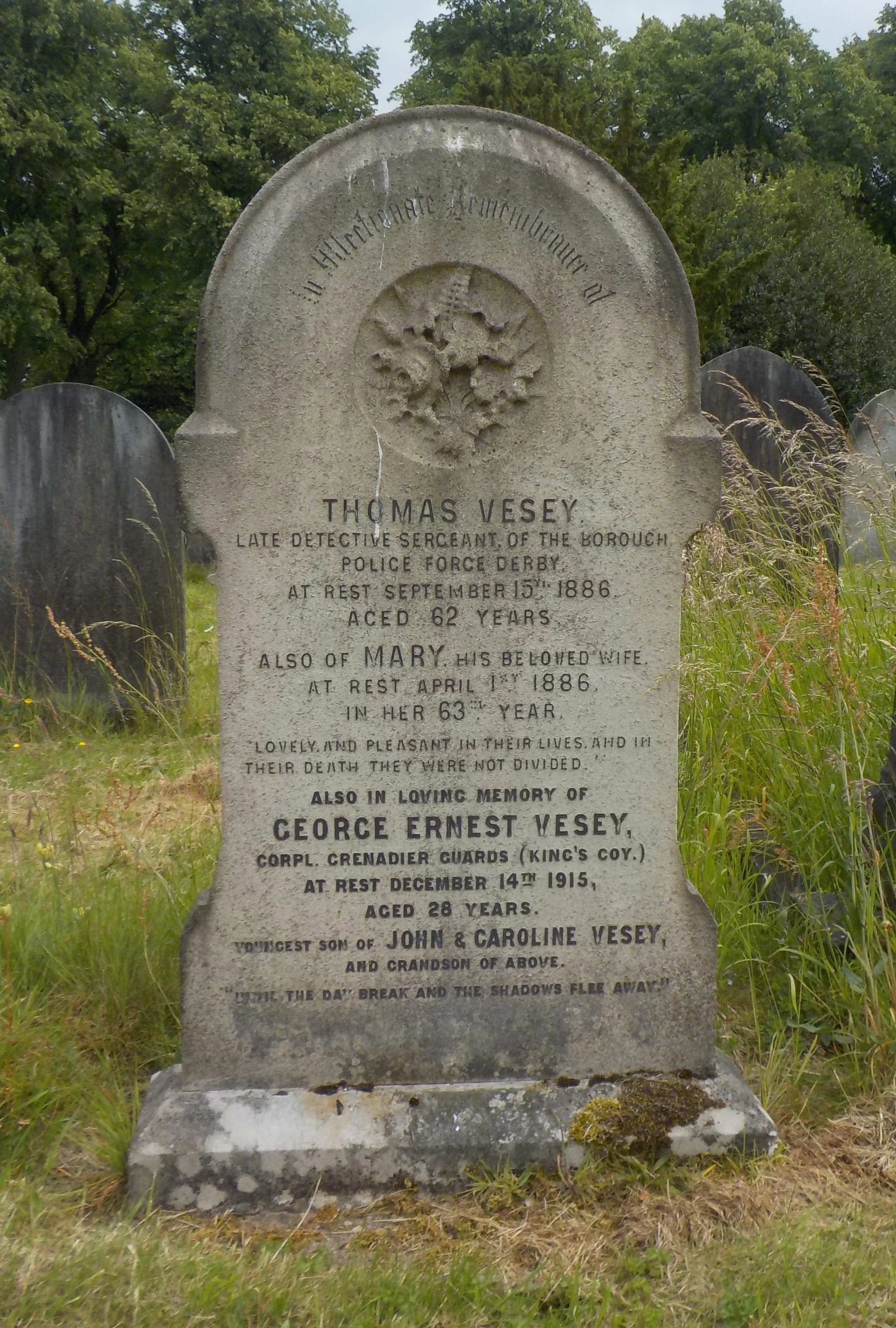 Died 14/12/1915 Age 27. Lance Corporal, Grenadier Guards, King's Coy. 1st Bn. Service Number 18150. Son of John and Caroline Vesey, of Derby.