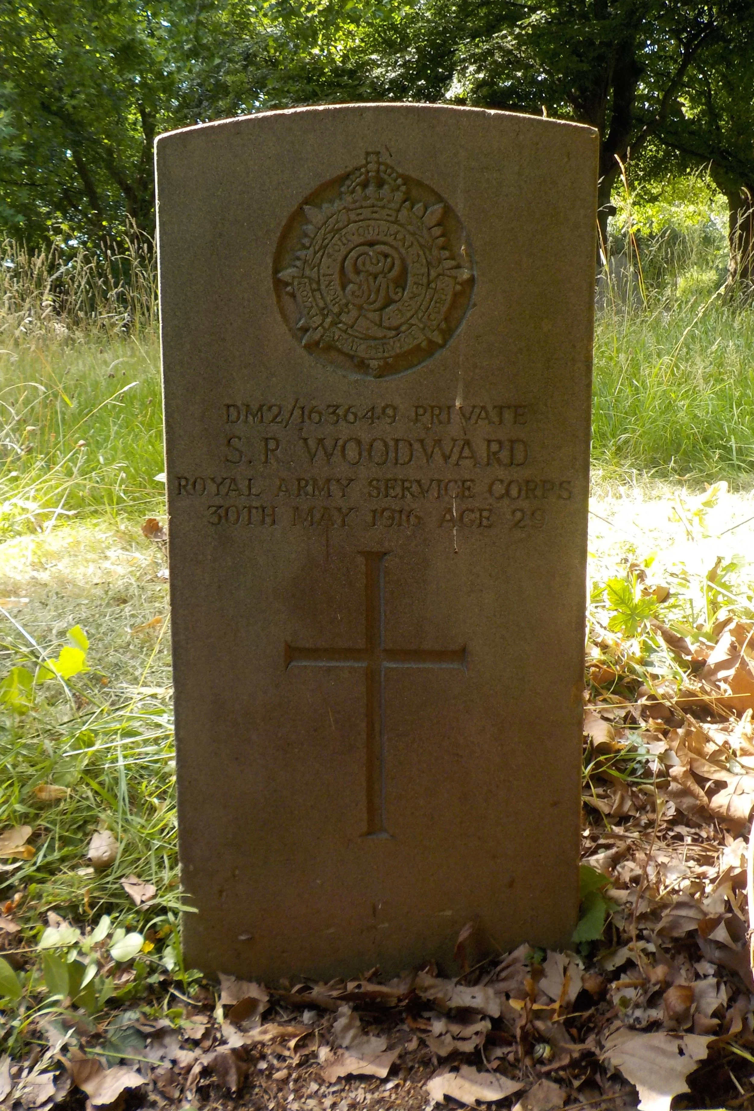 Died 30/05/1916 Age 29. Private, Army Service Corps, M.T. Reserve Depot (Grove Park). Service Number DM2/163649. Son of Rowland and Sarah Woodward, of 30, Leman St., Derby.