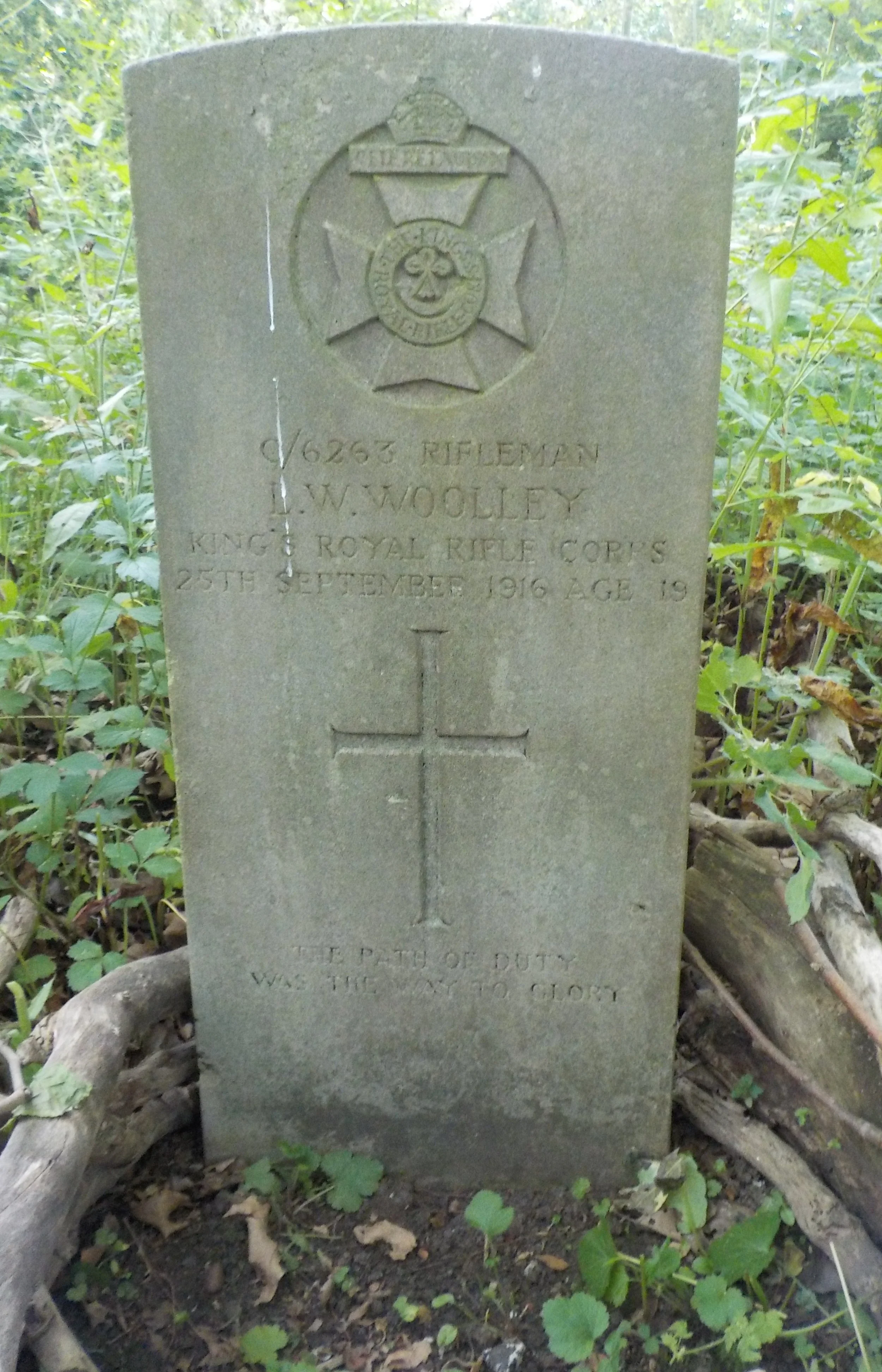 Died 25/09/1916 Age 19. Rifleman, King's Royal Rifle Corps, "B" Coy. 18th Bn. Service Number C/6263. Son of Walter and Clara Woolley, of 38, Milton St., Derby.