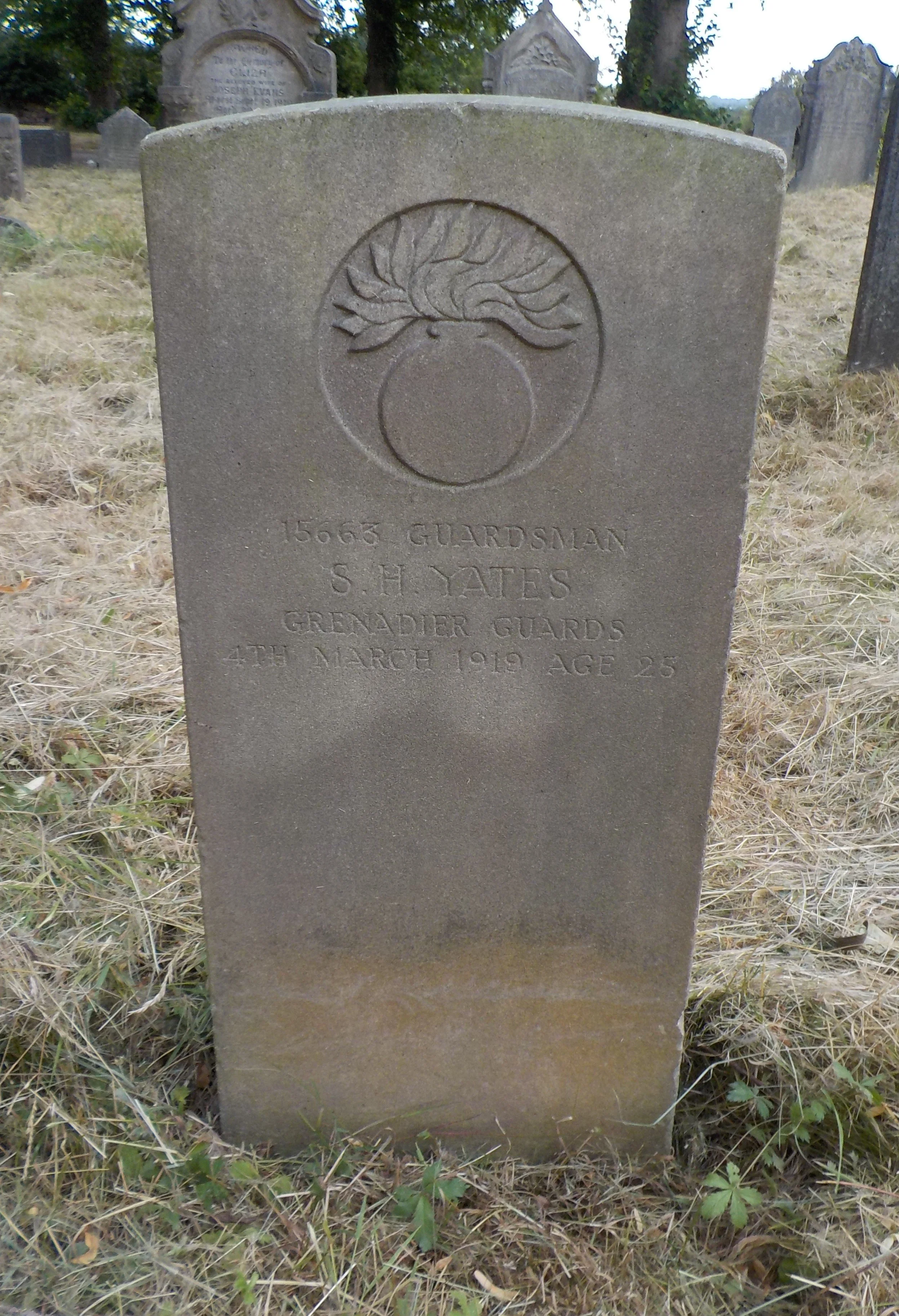 Died 04/03/1919 Age 25. Guardsman, Grenadier Guards, 5th Bn. Service Number 15663. Son of Samuel and Helen Yates, of 43, Madeley St., Derby.