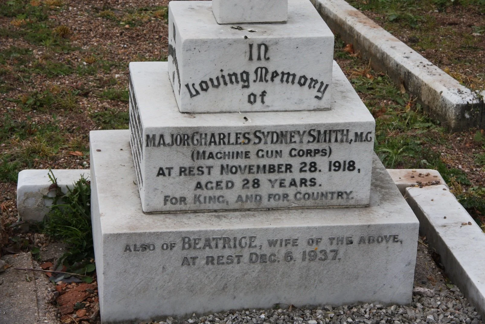 Major Charles Sydney Smith had transferred to the Machine Gun Corps and served throughout the war. He won the Military Cross and was mentioned in despatches several times.