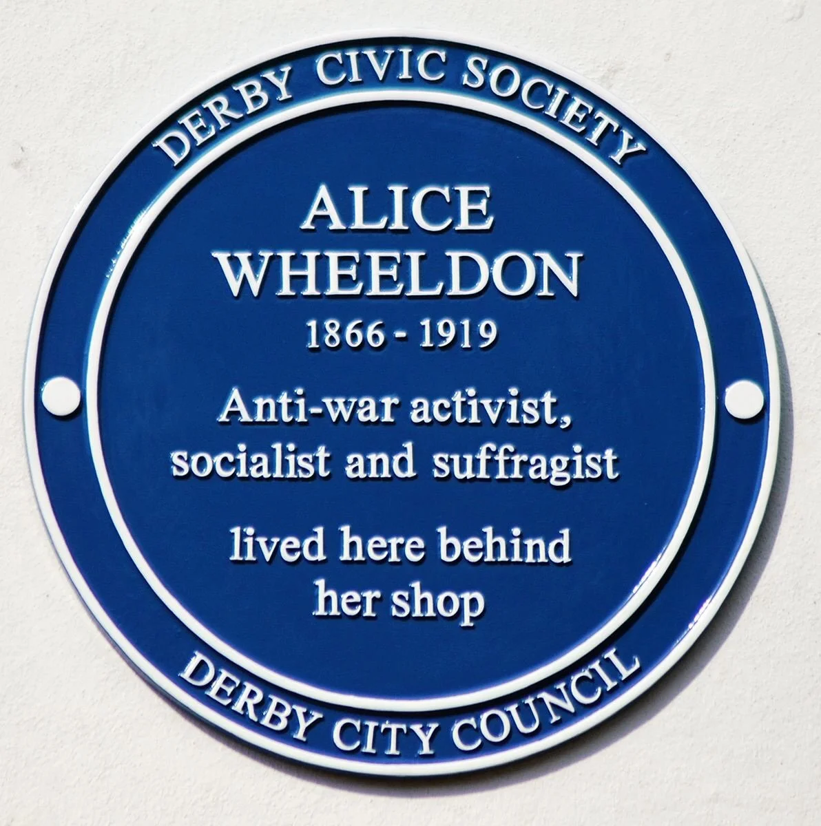 In 2013 Derby City Council and Derby Civic Society erected a Blue Plaque at 12 Pear Tree Road, Normanton, where she had lived and worked, recognising her place in Derby’s history.