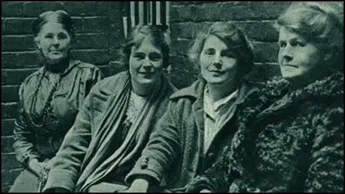 (Alice Wheeldon, right, with her daughters and a warden whilst in custody at Derby Police Court)